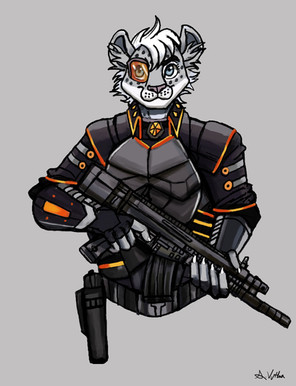 Story-wise, (which I really do need to put together at some point) this is after she's been rogue for a while and basically scratched most of her soldier designation off her armor. Along with general damage from skirmishes she gets in since its no longer getting repaired by skilled technicians.