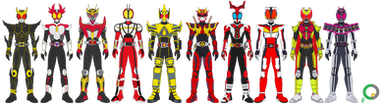 Form Ride of Dark Decade:kuuga prototype(official novel),shouichi agito(SIC novel),ryuga,kaixa,fake blade(SIC novel),shokuki(official novel),dark kabuto,nega den-o,dark kiva