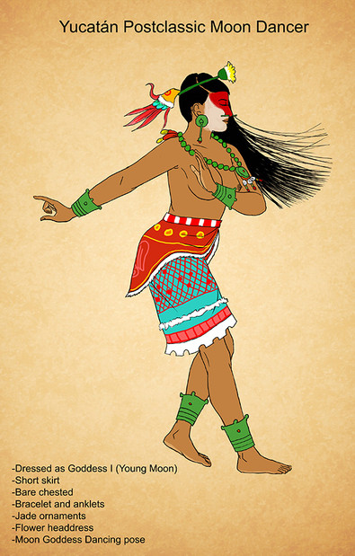 They also rubbed their skin with a yellow ocher dye that changed their skin color. The red paint comes from cochineal. Finally the sandals, turquoise necklace, jade and gold ear pieces and quetzal plumes designate her as a noble or ruler. Hope you all like and learned something lol.