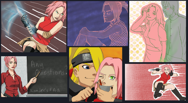 This piece is about loving your body image, no matter what "flaws" the material world thinks there are.When coming up with this concept, I first thought of drawing just Sakura, because I needed to work on my own insecurities, and Sakura and I share forehead insecurities. Growing up, I refused to pull my hair back into a ponytail until I was 16 (when my volleyball team coaxed me into it) because I thought my large forehead made me look horrendous. Even still, I would look at the mirror and my eyes instantly pinpoint my forehead. So, yes Sakura haters, it is a real insecurity, as much as you like to bash it.
