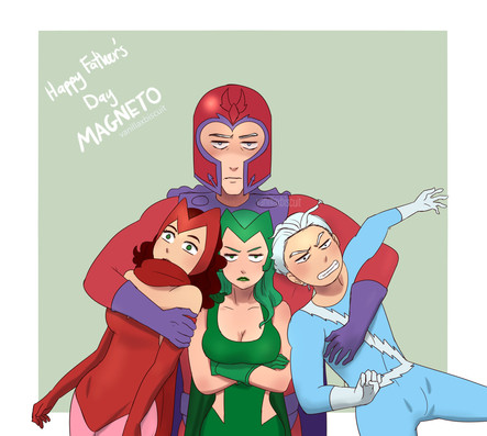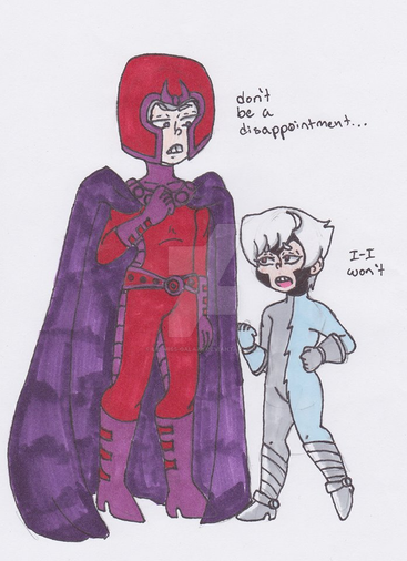 Look at all these beans with their magnekinesis.I've actually always wanted to do a picture of Pyrrha with Magneto, but never got around to it. Then little Peri revealed her powers, and I knew the three of 'em had to come together one day.