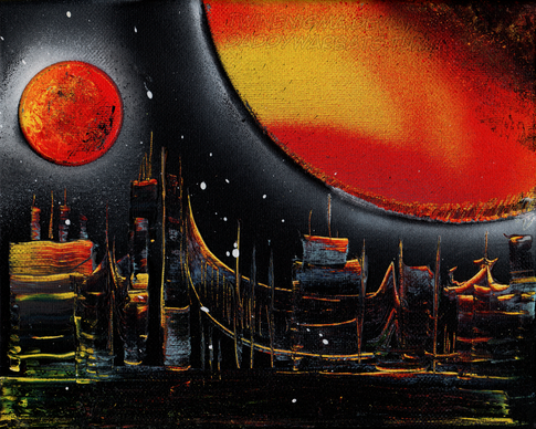 #acrylic #blue #city #planet #red #sky #water #acrylicpainting #gasgiant #painting #waterfall #waterfalllandscape