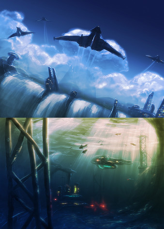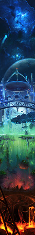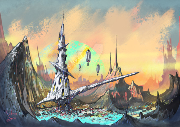 I love this kind of thing: imagining landscapes or civilizations on different kinds of planets with different suns. Beautiful work