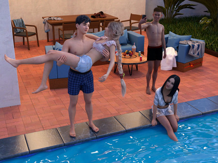 It was the weekend and Max was relaxing in the pool of the boarding school with his girlfriend Lara.