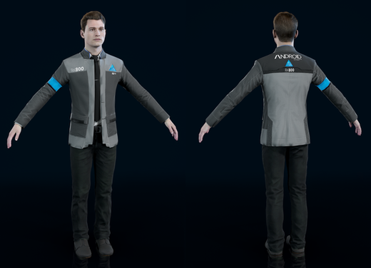 ★The diffuse and specular textures of the cloths are mostly rebaked by me, for there are no exact the suitable diffuse texture for rk900, so I have to recolour myself. The base color is "Connor_Coat_DP", which is a albedo texture consists of several gray scale diffuse.