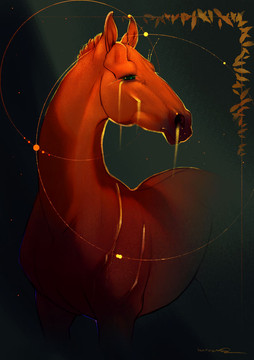 #dark #fog #horse #red #star #digitalart #digitalpainting #equine #photoshoppainting #stallion