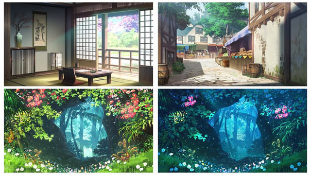 I think out of these 3, the forest one is probably the most fitting for use in animation! The first one seems more like a painting, and I see the second was a cool background for a video game~ but for cartoon/anime animation, I think the 3rd one would work the best!