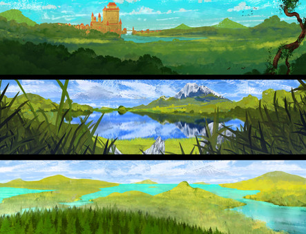 They are all beautiful of course, but I understand what you mean! The first two indeed may not feel very "dynamic" for animation (perhaps too "paintingly" look? if this is even a word, haha). But I think you are going to the right direction in the forest one, it has more contrast, some more saturation and feels more alive, it felt very close to what you would see in Studio Ghibli's movies! I think if you try to make the colors just a bit more vivid, it will work perfectly. Nonetheless, it's all beautiful!