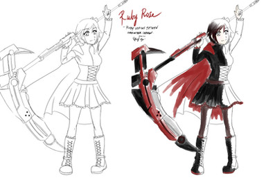 On panel 4, why do you put those two base colors down on the scythe and on RWBY? I see a lot of artist do that when they go to color, does it affect the way you color or something?
