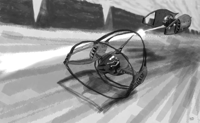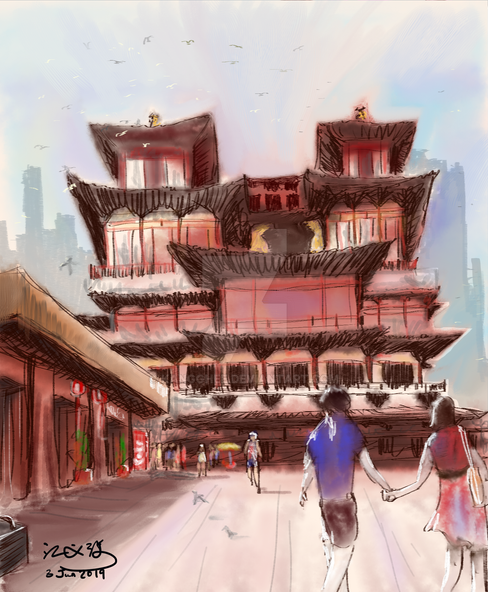 The key to having drawings look like it has volume starts with the perspective drafts. Block in the surfaces' different shades first.Only then do we blend and refine.