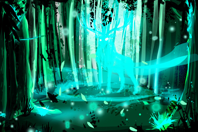 #background #deer #fireflies #landscape