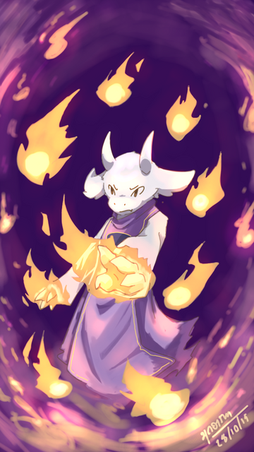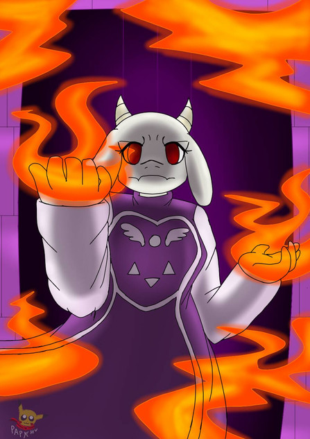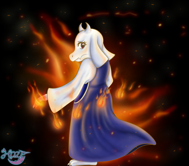 Also, this is another Toriel drawing because the fire in the other one kind of looked a bit bland. There was no color whatsoever, and it really bothered me, so I decided to do another one. This is MUCH better!