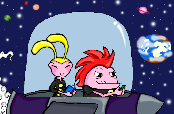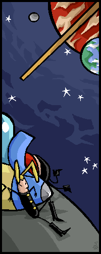 Drawn by , yo.I love how space is drawn in Kaput & Zosky. It's just so cartoony and unrealistic. It's just so immensely fun to look at, and to draw.