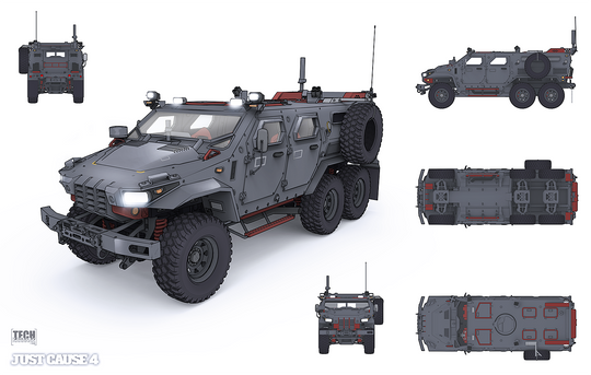LAPC Explorer. A versatile Light Armored Personnel Carrier, the Explorer is a troop transport equipped with a LMG for suppression and neutralization of infantry threats. The conversion has left it with it's all terrain capabilities, and it's able to go where most MBTs and other more heavily armored vehicles simply cannot go. It can act as a spotter with it's laser designator as well. The vehicle insulated from small arms and shrapnel, with some HEAT protection. Armor: 12.7 front, 7.62 sides and back. Glass is designed for small amounts of 7.62 as well.