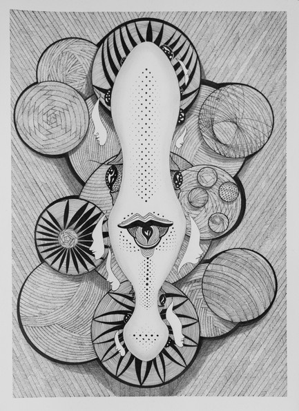 Drawing / Illustration named "Sunshine", ink and pen outline drawing with graphite pencil shading for depth on white paper. From my series of psychedelic drawings if you are interested I have more in my profile. Hope you enjoy the work!Original Created:2021
