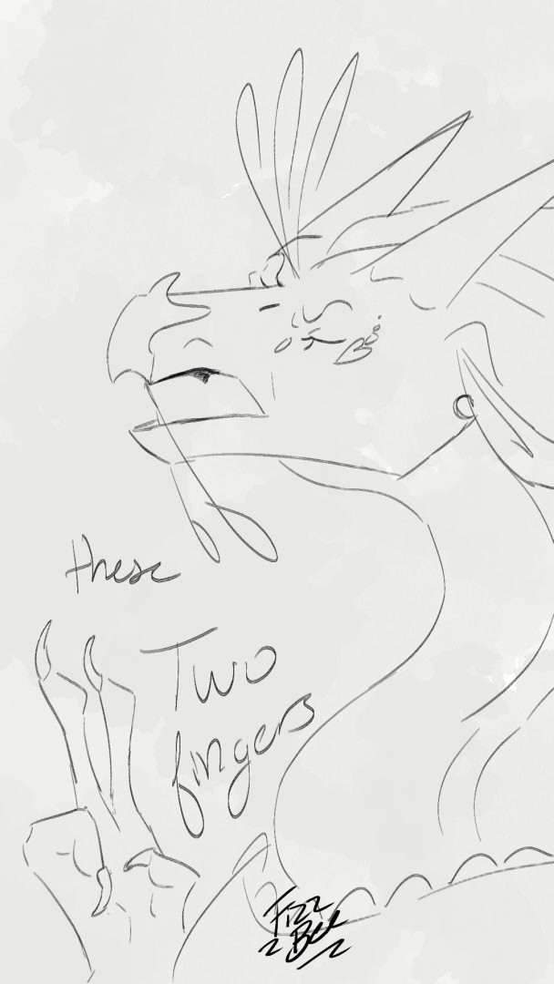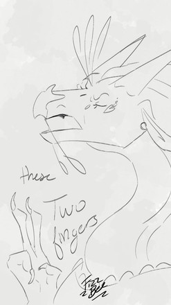 I was sick, grumpy, in a sour mood and realized I hadn't drawn anyone or anything smiling for a while. So I fixed one of those things."Hey Karbik, why did you give a cybernetic-mech-dragon-thingy a face & teeth"
