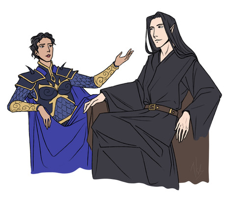 My original characters. Sagara, a highelf prince and adventurer, and Ashrah, a darkelf mercenary lord.