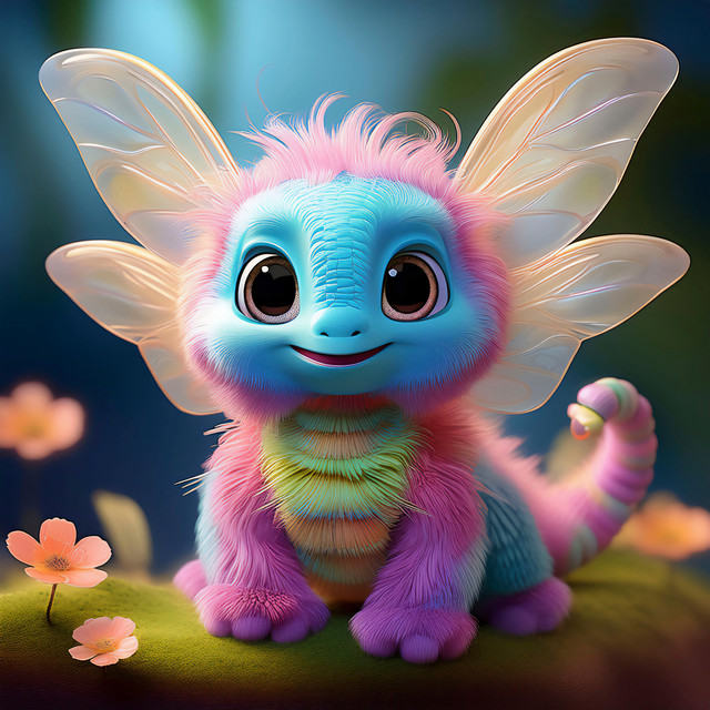 - Pixie FlutterbatΒ - A whimsical and colorful creature with large, feathered wings and bright, curious eyes. Their bodies are a vibrant mix of colors, and their wings shimmer like stained glass.