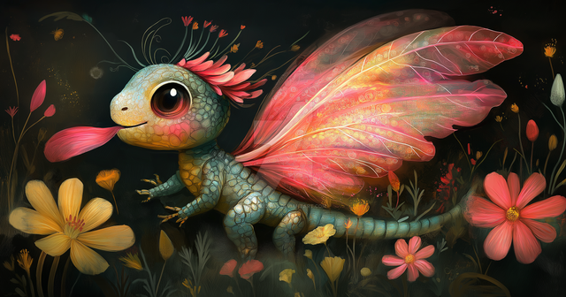 These creatures are said to live in meadows and forests, and are particularly fond of following travelers, lighting their way with their bioluminescent wings.