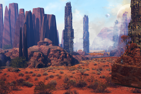 stunning scifi post-apocalyptic scene. Welcome back from the dead