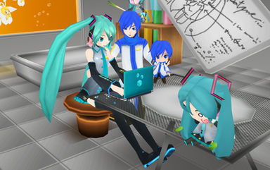 MMD or MikuMikuDance is a program to make videos or photos of vocaloids. The vocaloids you use are called models, so you can pose them or make them dance xD. You can use effects, stages, etc. You only have to download all you need . Here in devianart there are a lot of models, stages, effects, poses, tutorials you can download , you only have to credit the people that created the things. You should search for mmd pictures, then you see there is a huge mmd community here in devianart .