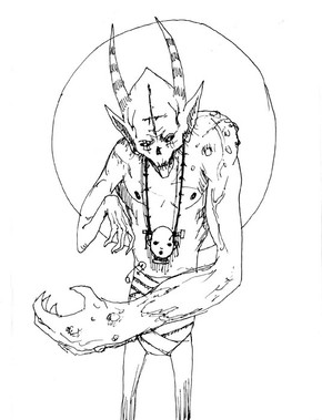 the lady thing on his back looks like a lady that Brom has drawn