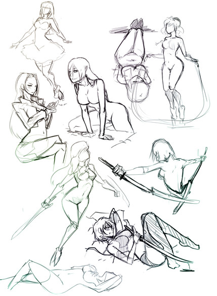 Some action and non action sketches I'm doing from time to time.. Hope they will be helpfull. If not.. Ah well..Fullview as you won't be really able to see much without zooming in.