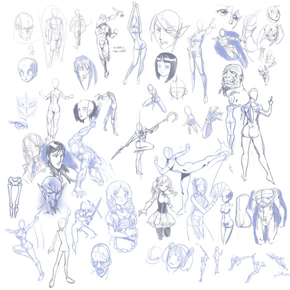 Oooo, this is actually really helpful, I bet I'll use a pose or two~ It's interesting to see how you map out poses, at least if it done how I think it is. Do you just use color to kind of scribble the pose, and then do the sketch over it?