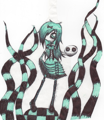 This is a cool drawing. The colors and idea that shes a cousin of the Addams family makes it even more so.