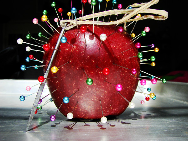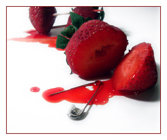 MUST.... Comment... Wow. for one those strawberries remind me of oldstyle pincushins a feeling that is kinda added by the pins sticking in them.. then you got all the underlying messages and the stuff you wrote.. +fav F$^# Yea!!