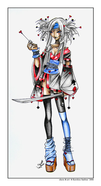 Wow, you have prolly heard this one a hundred times over but; I love the pose! I am a fan of Yoshitak Amano (you may think this has no relevance, but it does) and alot of his chracters are done in odd poses that just seem to work with his art, I applaud the coloring too, and the pose, agian, is great! superb work!
