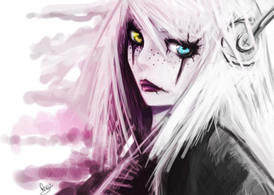 I absolutely love the stripes in her hair and her smeared lipstick. D: She looks edgy and interesting.