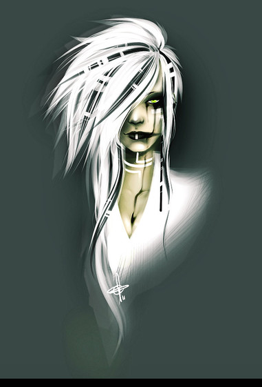 I'm digging the sharp, angular lines here. It's pretty awesome how you transition so well from a more realistic style, to an "inky" flowy one, to more expressive stuff like this so fluidly. Everything you draw is really recognizably "you", it's really cool. I love this character, too. Gatherer, right? Whatever her name is, she's awesome. <3