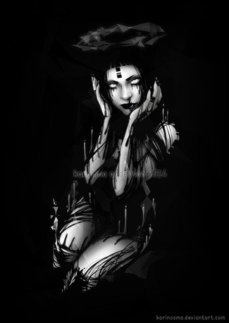 I like a lot the oddness of this image. It's not the typical girl, she looks more like an ancient goddess. But a goddess with something of our times, perhaps the angularity (?) of the lines and the way you bend her anatomy slightly to create something else. Great job