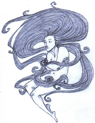 great image!! although the legs look a bit strange, the whole image is beautiful, i love her hair and all those little swirls