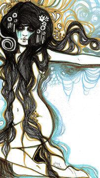 This is so pretty! I like how her hair flows with the background like that. It reminds me of a lava lamp in a good way.