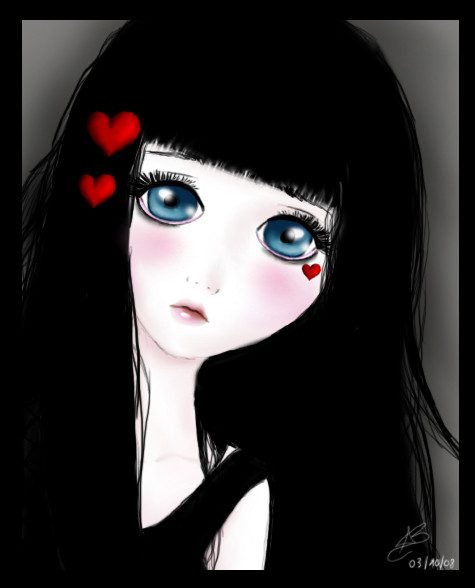 Wow. I just cannot believe how amazing all of your work is. This one, I love because it is so simple in the outfit, but carefully drawn in the face with intricate background designs that tell all. Fantastic!