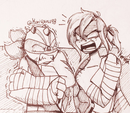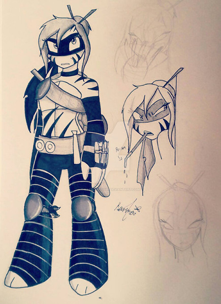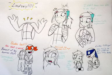 So Lindsey use to train with the turtles but she only knew how to block hits, and usually her arms get hurt so Splinter decided to give her a weapon to avoid getting hurt and also help her fight ( and she loves it)