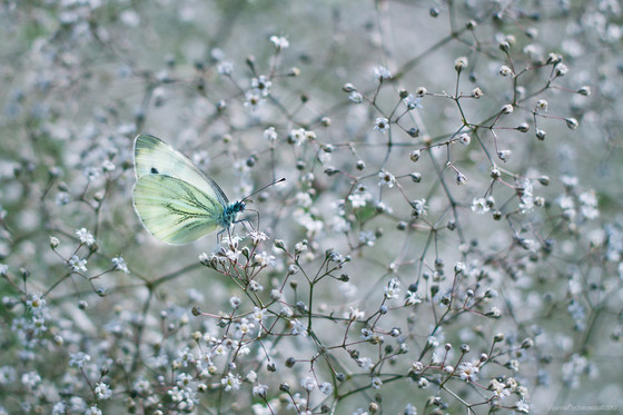 This photograph somehow reminds me of my childhood, because I always admired butterflies in general, and especially these little white ones always sitting on the lavender.Furthermore this photo was taken in my grandma's garden, where I used to play a lot and observe these butterflies. The photo represents my colorful childhood dreams of the light-hearted nature