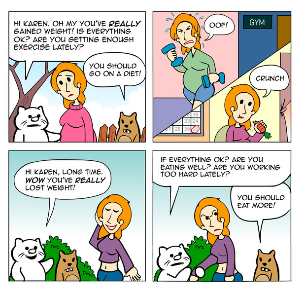 She shoulda only eaten half the pizza... It would only have had half the calories. :-p