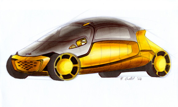 Side view of the final Bugatti design, not too convinced about some of the final decisions, but hey, deadlines.Pencils, Markers, and pastels. A2 paper.