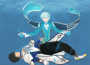 I just wish the water came out to more of what I imagined in my head, but because I did something silly in my layering of Hikari, Rayne, and the Water, I really couldn't. Also, colouring hair black is super hard. >.< I really like the clothes and water drops. It took me hours just to do that and I really think it makes the piece.