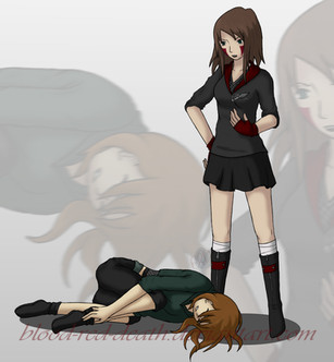 So for the image, which sadly I didn't execute as greatly as I wanted to (freaking water. freaking hair. freaking ASDFGHJKL.). Hikari and Rayne are both mixed up with Sasuke and he is a meanie and he sucks and he is a constant negativity in both of their lives. So I wanted to put them in a kind of metaphor, if that makes sense. The purple water is supposed to be Sasuke's influence and they are both sinking. Hikari is more affected by it, so she is kind of starting to really drown, but Rayne refuses to let her go without a fight. So I was trying to capture both their personalities: Rayne who always does what she knows to be right regardless of how it has to be done and Hikari who is so close to giving in that she is teetering on the edge of life and death but hanging on by a thread because she hopes for some kind of happy ending.