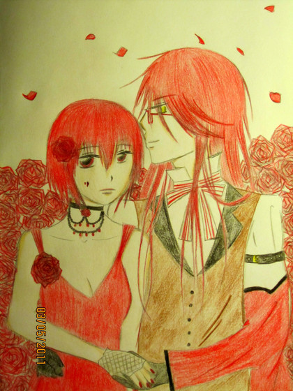 This was for ! It's of Grell and Madam Red from Kuroshitsuji. Man, they work so great together. I was hoping she'd appear in the second season somehow and be like 'lulzhi'.P.S. I think I lost the version with the background.