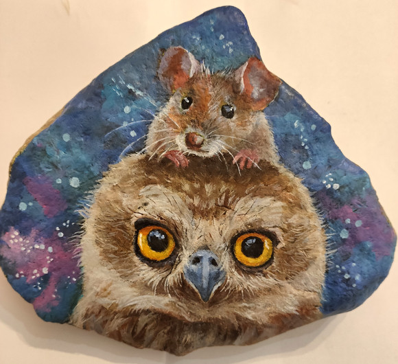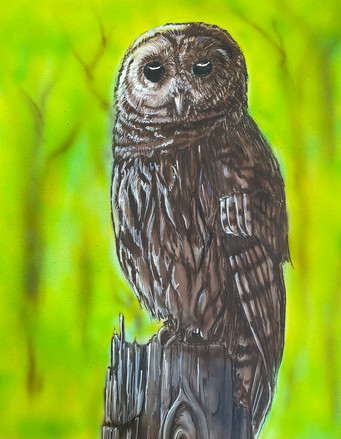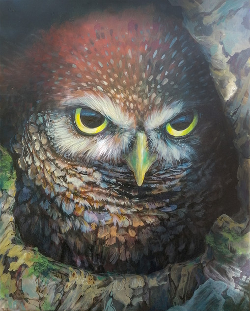 This is an acrylic painting done on a stretched canvas. Many thanks for an excellent photo of Dennis Buchner, which I could use for free.I love owls and their big beautiful eyes.