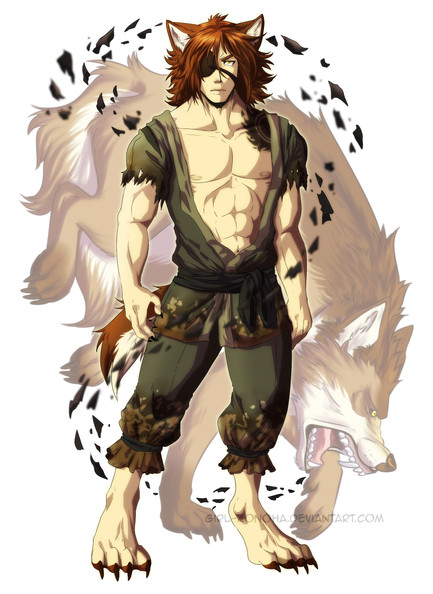 cara, simplesmente eu desenhei um humano meio agaixado como um lobo e botei pelos