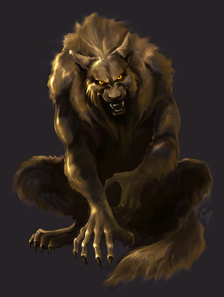 Na minha opinião, você pegou muito bem vários aspectos importantes para um lobisomen. As patas traseiras (ou pernas) são claramente maiores do que as dianteiras, sendo que estas ainda apresentam dedos, sem falar dos ombros largos, o que claramente insinua um esqueleto mais pra humanóide do que canino. Só o que ficou faltando foi dar um trato no rosto, que ficou bom como lobo mas nao se encaixa muito bem na imagem de um lobisomen.