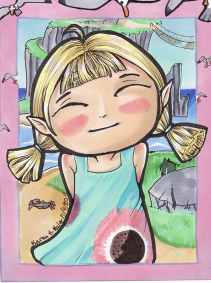 My second newest (as of Oct. 2010) Zelda Fan Artwork. I loved the idea of Impish Midna going for a wild ride on Epona. I am planning on doing one with her in her full sized form riding serenely, in a totally different style.Copic markers, my one true art supply love!