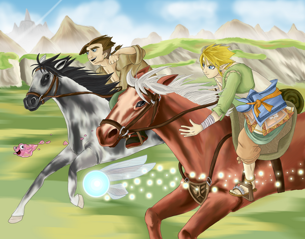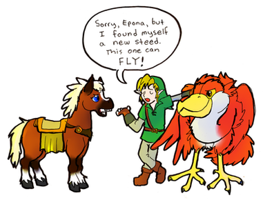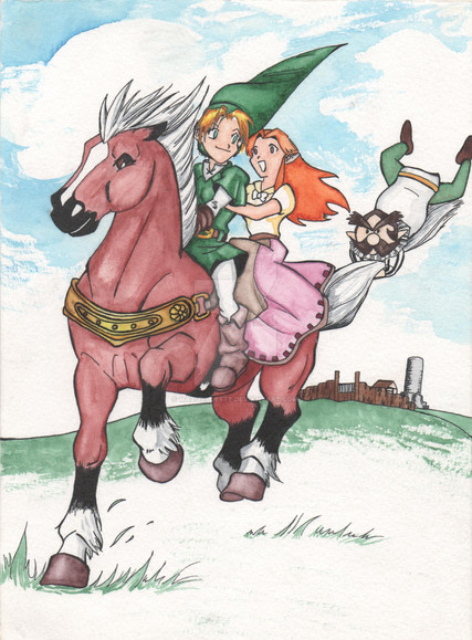 I can't wait to see the new drawing! This one is so awesome, I think that Link's wonky arms kind of add to the comedic affect. Epona looks kind of mean, though.