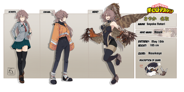 Credit goes to himeRra for the Reference sheet.This is my character Emika-Li from the 10 Rings Hero AU. She is the adoptive mother of my OC, Shen-Li. Her quirk is Bullseye, which allows her to hit targets from afar. Because of this quirk, she has earned herself the codename Hawkeye. Emika is also a lesbian currently in a relationship with Kaina Tsutsumi a.k.a Lady Nagant.